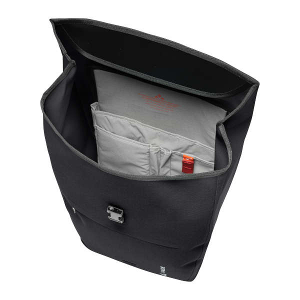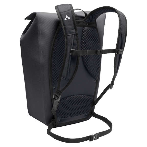 Mit dem wasserdicht verschweißten Fahrrad Rucksack bekommst du einen vielseitigen Begleiter für City- und Alltagsradler. Er hat sich auf dem Weg zur Arbeit genauso wie auf dem Wochenmarkt oder bei Tageswanderungen bewährt. Das weit öffnende Raumwunder kommt mit einer gut belüfteten, bequemen Rückenpolsterung. Brust- und Hüftgurt garantieren festen Halt und sind bei Bedarf abnehmbar. Im Inneren des Fahrradrucksackes sorgen ein gepolstertes Laptopfach für 13,3” Geräte und ein weiteres gepolstertes Fach für ein Smartphone sowie Schlüssel- und Stiftehalterung für Ordnung. Ein breites Einsteckfach mit wasserdichtem Reißverschluss auf der Front, eine kleine Reißverschluss-Tasche am linken Schulterträger sowie ein Blinklichthalter und das reflektierende VAUDE Logo runden die Ausstattung ab.