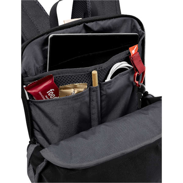 Der kleine Daypack ist mit seinen nützlichen Details ein super Begleiter im Alltag und auf Reisen. Er ist aus einem strapazierfähigen, dicht gewebten und wasserabweisenden Recyclingmaterial hergestellt. Zur Ausstattung gehören ein gepolstertes Tabletfach für ein 10″ Tablet, zwei Einsteckfächer innen, Stiftehalter, einen Schlüsselhalter, eine Trolley Aufsteckfunktion, eine Blinkie-Halterung und als Besonderheit ein herausnehmbares, abwischbares Sitzkissen. Im Frontbereich des Daypacks befindet sich ein weiteres Reißverschluss-Einsteckfach für Dinge, die oft und schnell zur Hand sein müssen. Durch den Tragegriff an der Oberseite kann der Rucksack aufgehängt oder auch an der Hand getragen werden.