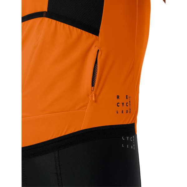 Das sportliche Rennrad Trikot in modernem Design ist ideal für ambitionierte Rennradfahrer. Es ist hinten besonders lang und vorn besonders kurz geschnitten, hat einen durchgehenden Reißverschluss und bietet dir ein Höchstmaß an Tragekomfort in jeder Fahrposition. Die ultraleichten, sehr stretchigen Materialien, angeschnittene Schultern mit besonders flach verarbeiteten Nähten, silikonisierte, elastische Bündchen an den extra lang über den Bizeps geschnittenen Ärmeln und im Bund machen das Fahrrad Trikot zur zweiten Haut. Für zusätzliche Belüftung sorgt das sehr elastische, ins Design integrierte Mesh-Material im Rücken. 3 offene Rückentaschen sind für leichteren Zugriff beim Fahren leicht abgeschrägt.