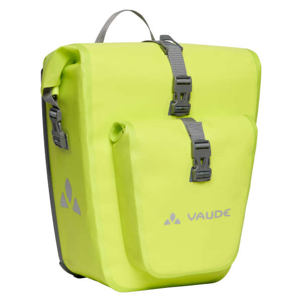 Die wasserdichten Hinterradtaschen aus robustem, PVC-freiem Planenmaterial werden klimaneutral am deutschen VAUDE-Standort hergestellt und gehen gerne mit Dir auf große Reise. Durch den Wickelverschluss lassen sie sich auf individuelle Größe bringen und absolut wasserdicht verschließen. Für Übersicht sorgen eine einfache Innentasche sowie die aufgeschweißte Außentasche. Die Taschen werden am Gepäckträger befestigt, sind einfach bedienbar und können mit einem Fahrradschloss direkt am OMR-Haken verriegelt werden.