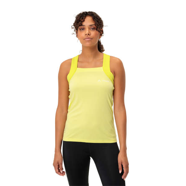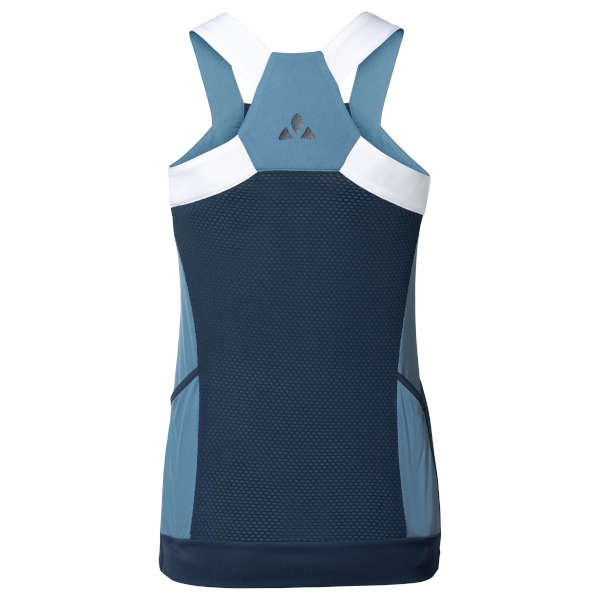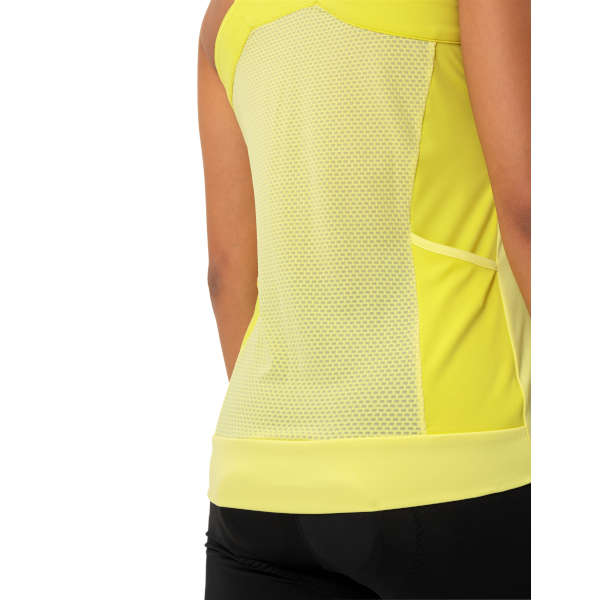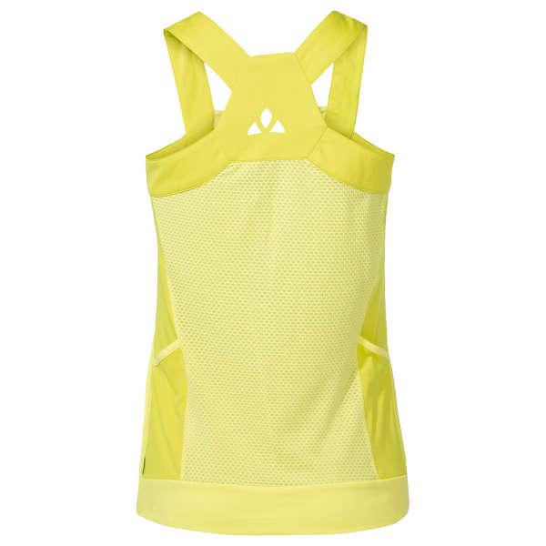 Das etwas legerer geschnittene, multifunktionale Top wurde speziell für sportliche Radlerinnen entworfen, die auch an sehr warmen Sommertagen auf Tour sind. Es überzeugt mit einem frechen, peppigen Look und bequemen Trägern. Sein schnelltrocknendes Gewebe aus recyceltem Polyester liegt angenehm weich auf der Haut und gibt Feuchtigkeit schnell ab. Zur besseren Belüftung wird an den Seiten ein weiches Wabenmesh eingesetzt. 2 offene, integrierte Rückentaschen und das dekorative VAUDE Logo runden den Radsport-Look dieses vielseitigen Damen Fahrrad Tops ab.