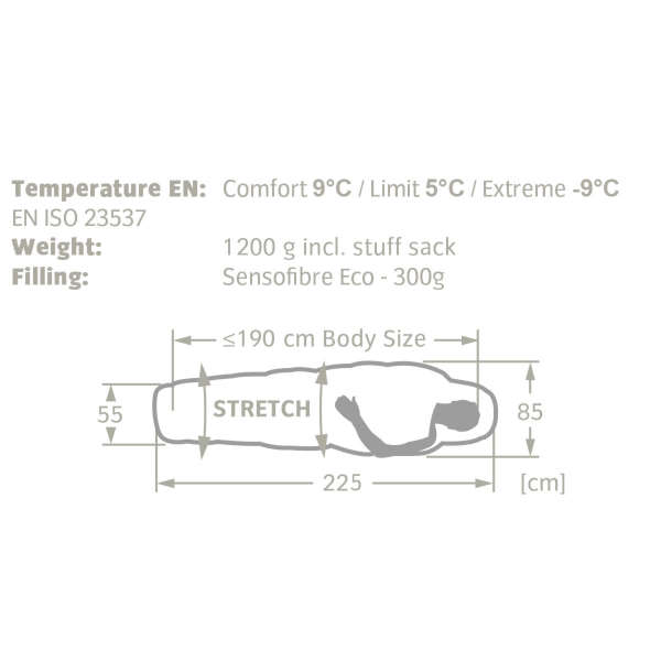 - Ultimative Stretch-Konstruktion, damit du dich im Schlaf frei bewegen kannst und und trotzdem jederzeit perfekt vom warmen Schlafsack umschlossen bist.